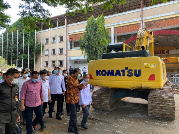 Gubernur Sulsel Prof Dr Nurdin Abdullah melakukan pembongkaran secara simbolis terhadap Stadion Mattoanging.