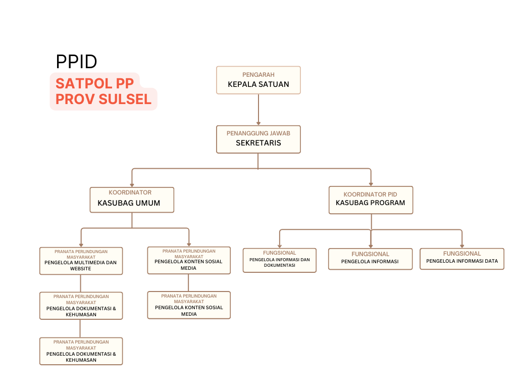 Dalam mengoptimalisasikan pelaksanaan tugas pokok dan fungsi serta kewenangan Satuan Polisi Pamong Praja Provinsi Sulawesi Selatan, maka dibentuk kelembagaan berdasarkan Peraturan Pemerintah Nomor 18 Tahun 2016 tentang Perangkat Daerah dan ditetapkan dengan Peraturan Daerah Provinsi Sulawesi Selatan Nomor 10 Tahun 2016 tentang Pembentukan Susunan Perangkat Daerah serta Peraturan Gubernur Sulawesi Selatan Nomor 76 Tahun 2016 tentang Kedudukan, Susunan Organisasi, Tugas dan Fungsi, Serta Tata Kerja Satuan Polisi Pamong Praja Provinsi Sulawesi Selatan.22
